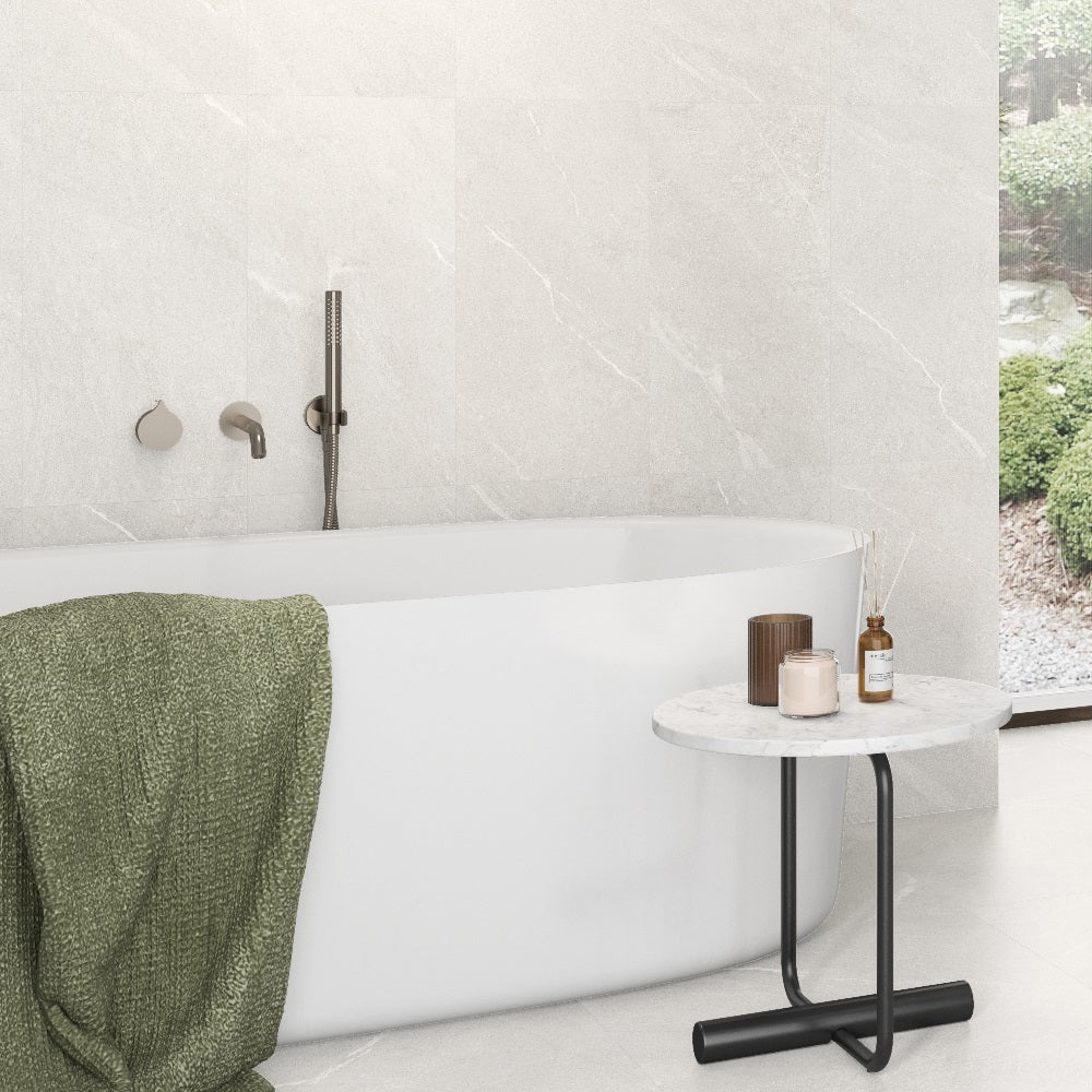 The Madone White has a soft limestone effect with a smooth natural finish. Perfect for complementing darker shades to keep the area looking light and spacious