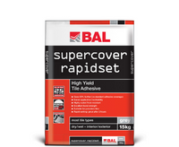 A cementitious non-slip wall and floor adhesive, BAL Supercover Rapidset provides outstanding yield and sets in double quick-time.
