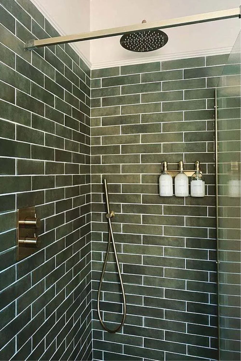 Brings a clean, down-to-earth feel, Caledonia Khaki Green tiles feature a sleek matt finish and rich earthy tones, making them a stylish and unique choice for your kitchen or bathroom walls. Customer Image: @renovatingat40