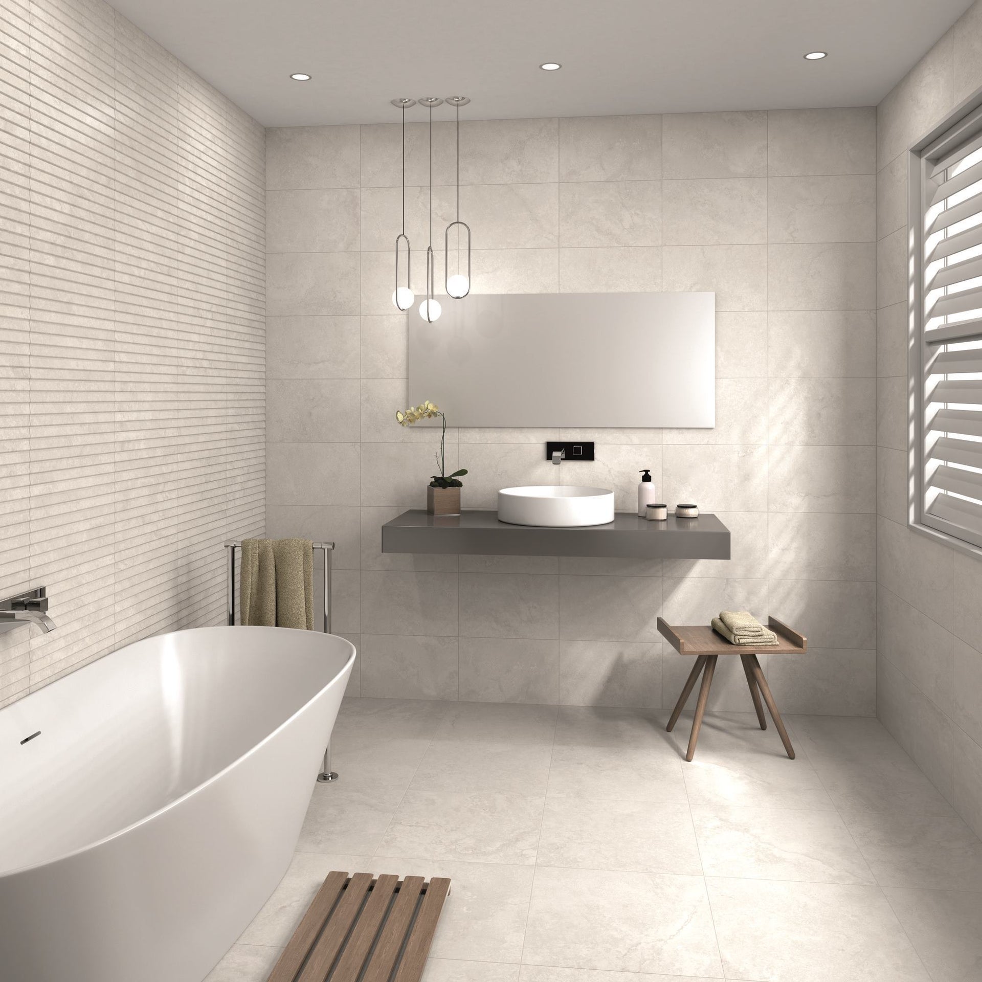 The Essential range is a beautiful collection of stone effect tiles, with subtle marble detail in the plain tiles with striking matching decor tiles, available in 3 neutral shades. The white carved decor wall tile will provide a stunning backdrop to a contemporary interior design.