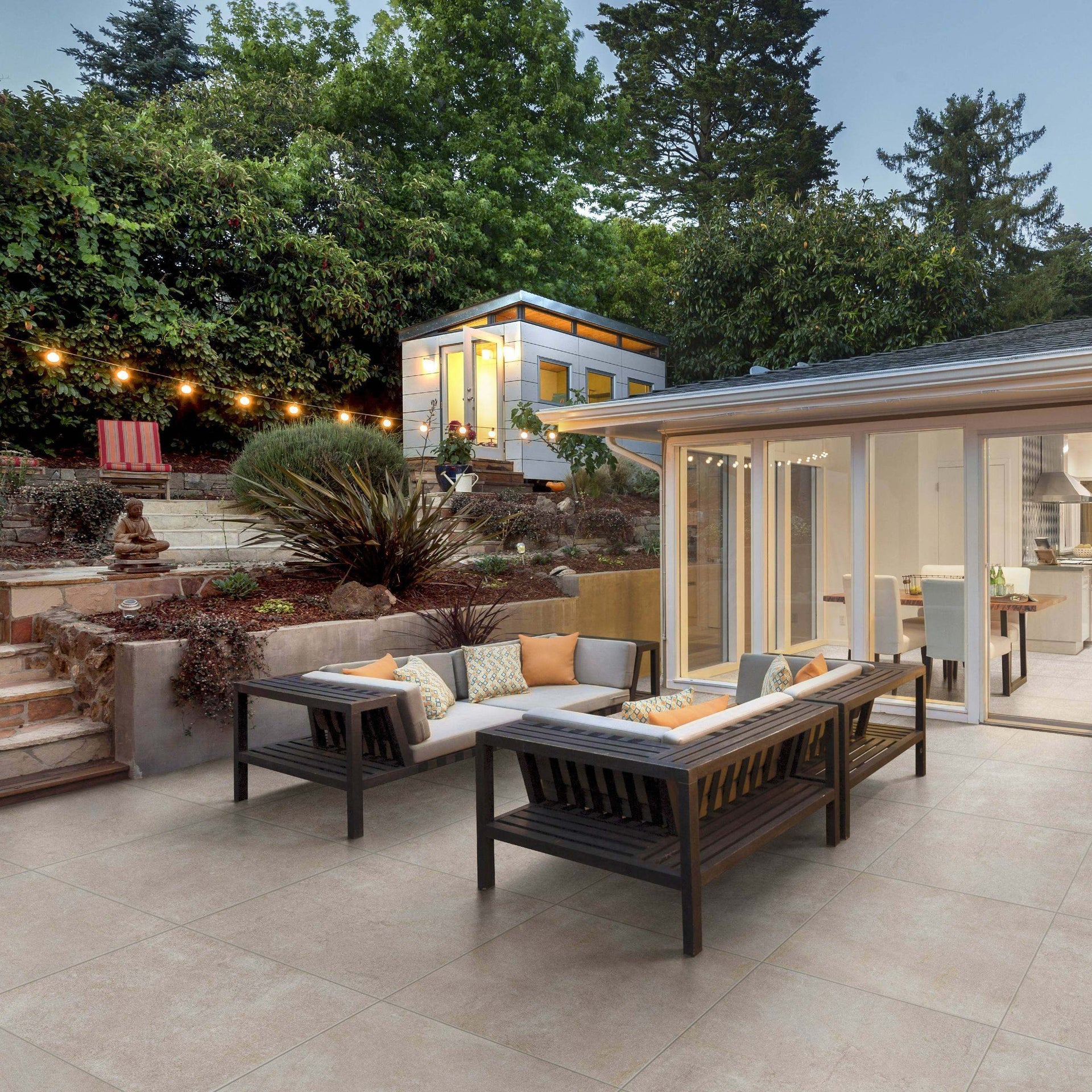 Brighten your garden with the Eternal Almond 1000x1000mm porcelain tile. Its warm stone tones and large format design create elegant, seamless patios and terraces. With 20mm thickness, it offers durability and slip resistance, ideal for stylish outdoor living.