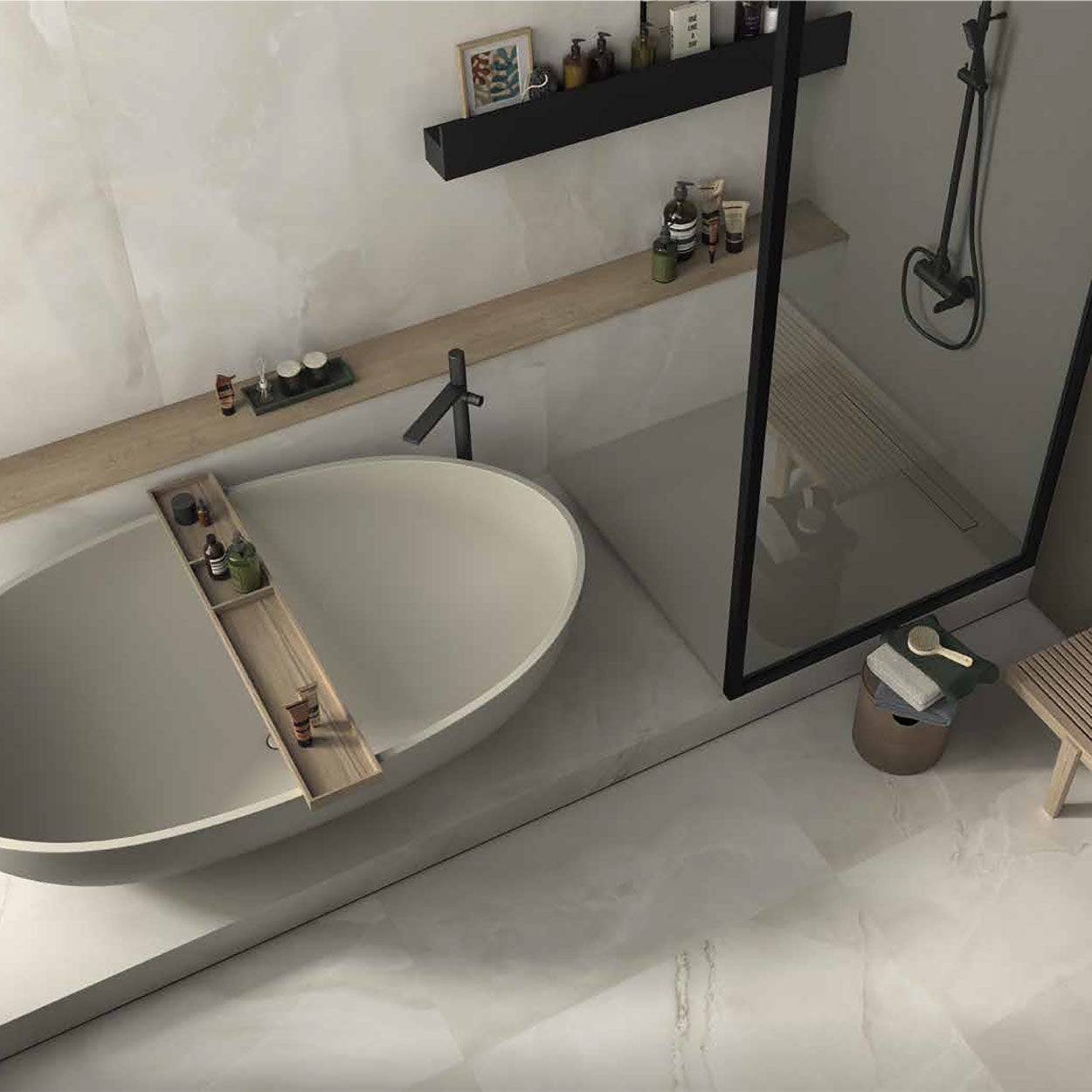 - Polished onyx-effect porcelain