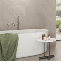 The deep taupe colour of the Madone provides an excellent character shade to a standard white bath. The light veining running through the tile adds another level that makes the Madone look beautiful on walls and floors.