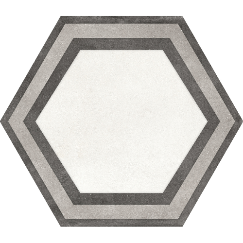 The stylish Osaka White Framed brings a framed pattern detail for a geometric look with an on-trend hexagonal shape. Suitable for use on both walls and floor, these gorgeous porcelain tiles will add a touch of creativity to your home. Available in a range of design options: Osaka White, Osaka Grey Flower, Osaka Mint Box, Osaka Mint Art, Osaka Beige Flower, Osaka Grey Framed and Osaka Black & White Box. Part of our Pure Collection.