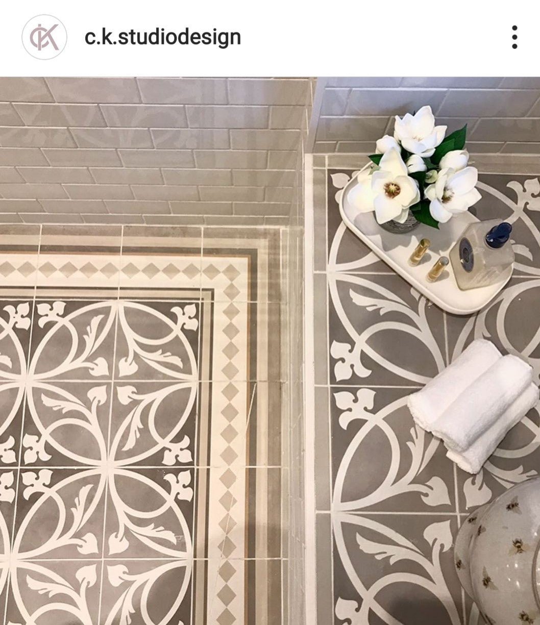- Coordinates with plain Taupe or White tiles