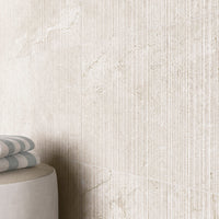 Our beautifully grained and toned Porto White Cut Decor stone effect wall tiles bring a soft and soothing feel to any bathroom or kitchen tiling project.