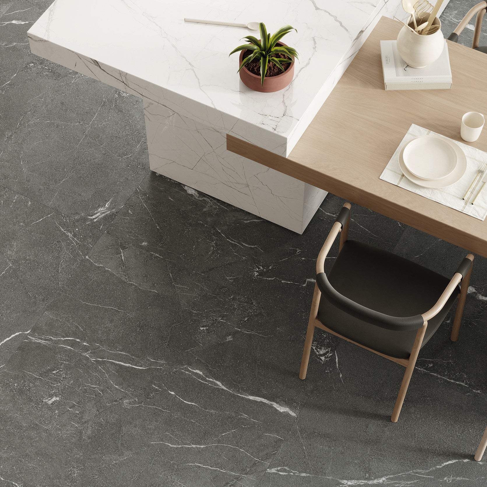 The Sennen Dark Grey Tile offers bold sophistication with its stone‑effect finish. Its deep grey tone creates dramatic contrast, perfect for modern interiors.