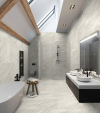 Our Stonehouse Beige porcelain tile brings a classically beautiful quartzite stone effect to your latest kitchen or bathroom interior design project. Also available in a distinguished dark grey, wonderful white and gorgeous grey.