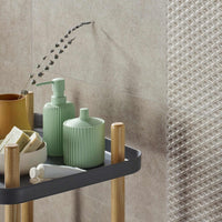 The Stratford tile collection stands out for its shiny ink effects and concrete inspired design, available in 3 colours of Pearl, Moon and Shadow in coordinating wall, decor and floor formats.