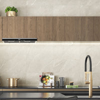 Beautiful warm tones and realistic limestone veining make the Tourmalet Sand a superb choice for kitchen and bathroom walls. Add LED light strips to make the most of the gloss surface