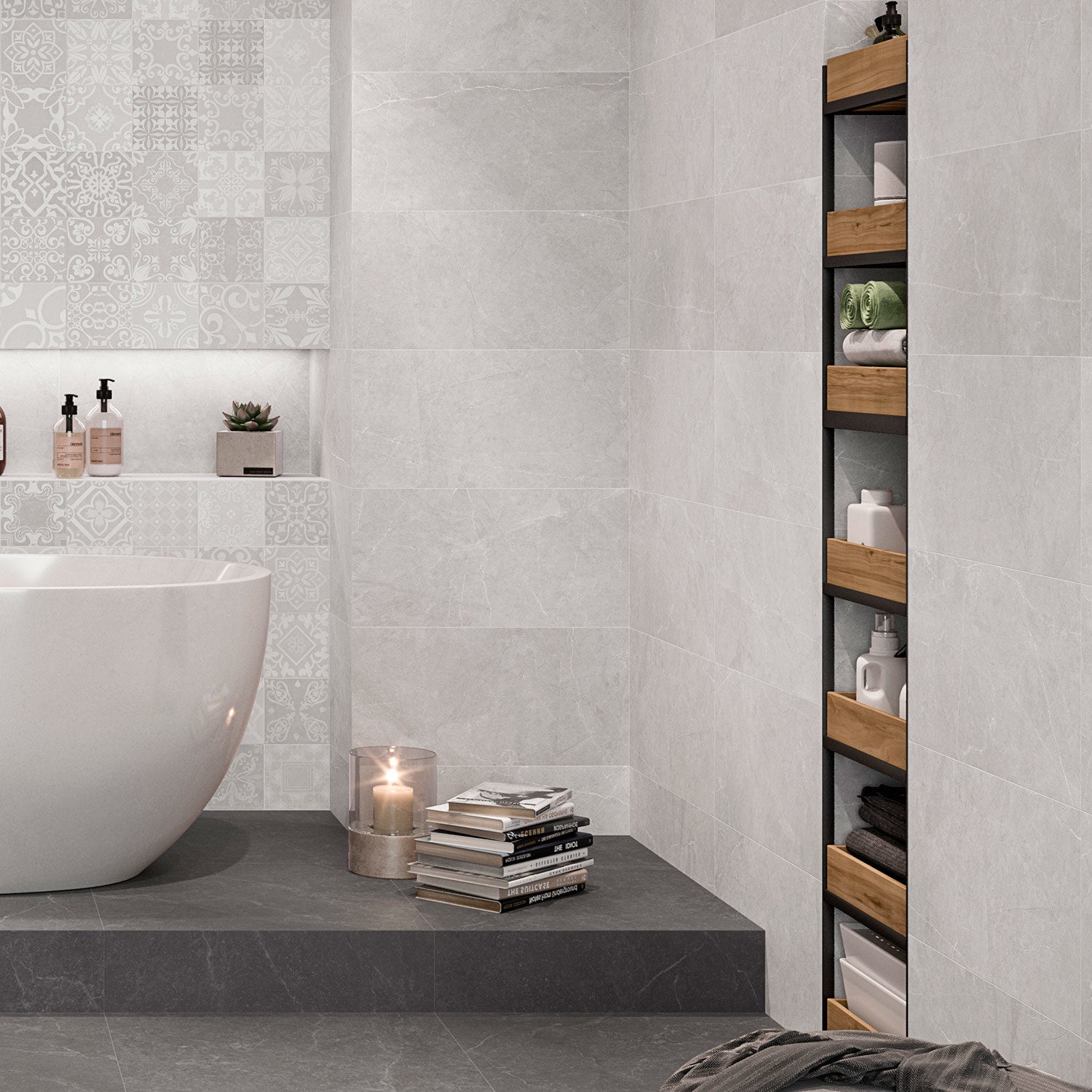 Create a stunning soft-brushed stone look in your home with our Ventus Grey Matt concrete effect tile. Bring your bathroom or kitchen interior design project to life.